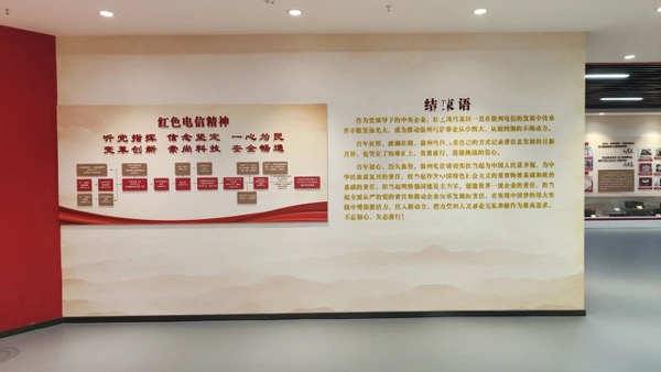 中國電信徐州分公司紅色通信展館于2021年籌建完成,該館將企業(yè)發(fā)展史融入黨的歷史,完整展示了近現(xiàn)代以來,徐州電信事業(yè)從無到有、從弱到強(qiáng),從單一到綜合、從落后到先進(jìn),在黨的領(lǐng)導(dǎo)下,一步一步發(fā)展壯大的光輝歷程。