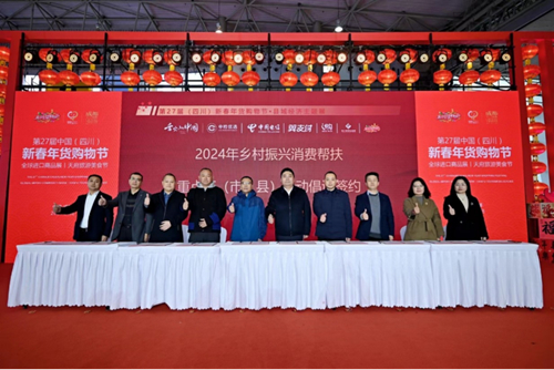 本次購物節(jié),四川電信與中國中檢四川公司、四川省錦弘集團(tuán)等企業(yè),鹽邊縣、彭州市等20多個(gè)區(qū)市縣政府共同開展縣域經(jīng)濟(jì)主題展,并攜手“舌尖上的中國”IP運(yùn)營(yíng)中心、新春年貨購物節(jié)組委會(huì)聯(lián)合推出“蜀里安逸·樂購新春—舌尖上的中國·10億優(yōu)惠券大發(fā)送”、2024年四川鄉(xiāng)村振興消費(fèi)幫扶行動(dòng)倡議啟動(dòng)儀式等活動(dòng),是助力鄉(xiāng)村振興的又一重要舉措。