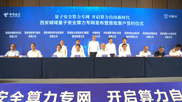 2024年9月19日,中國電信陜西公司在西安舉辦了以“量子安全算力專網(wǎng) 開啟算力自由時代”為主題的全國首個城域量子安全算力專網(wǎng)發(fā)布會。西安市政府、陜西多所高校、園區(qū)和相關(guān)企業(yè)代表出席此次盛會,共同見證了這一重要時刻。發(fā)布會上,西安市政府與中國電信陜西公司共同簽署了相關(guān)戰(zhàn)略合作框架協(xié)議,標(biāo)志著雙方在數(shù)字化轉(zhuǎn)型和數(shù)字經(jīng)濟(jì)領(lǐng)域的合作邁入新階段。