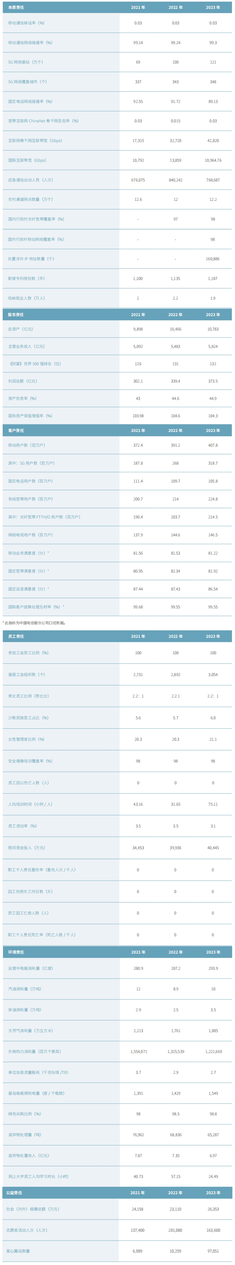 深入推進(jìn)社會(huì)責(zé)任管理:中國電信將進(jìn)一步完善社會(huì)責(zé)任工作保障機(jī)制,聚焦社會(huì)責(zé)任組織建設(shè)、社會(huì)責(zé)任能力體系、社會(huì)責(zé)任溝通等方面,持續(xù)提升社會(huì)責(zé)任管理水平,推動(dòng)企業(yè)在新時(shí)代體現(xiàn)新?lián)?dāng)、展現(xiàn)新作為。