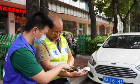 2020 年 6 月 14 日,在福建省福州市臺(tái)江區(qū)群眾東路,智慧停車(chē)團(tuán)隊(duì)成員前往路側(cè)泊位指導(dǎo)一線收費(fèi)員使用系統(tǒng)