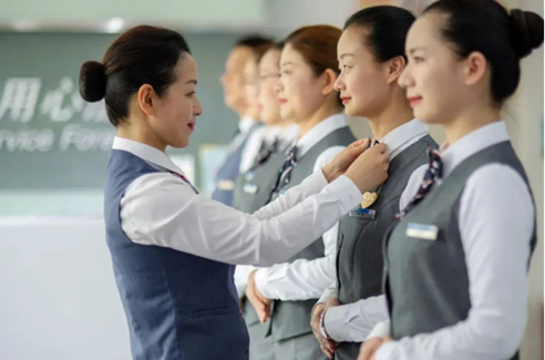 圖為邱莉娜作為客戶服務(wù)專家?guī)Ы谭?wù)禮儀