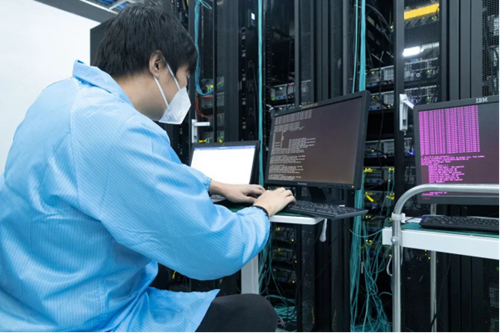 跟著劉博士的腳踏車,記者來到了實驗機房。轟鳴的噪聲和機架的熱浪中,研發(fā)人員鄭超正在緊張工作,他指向一排機柜說:“這是一個全閃存儲項目,正在進(jìn)行上線前的業(yè)務(wù)測試。”據(jù)介紹,依托中國電信研究院實驗環(huán)境,云網(wǎng)融合大科學(xué)裝置提供了天翼云仿真適配平臺和業(yè)界首個NFV三層解耦網(wǎng)絡(luò)云實驗平臺,能夠開展5GC解耦測試、信創(chuàng)云適配、云計算新技術(shù)研究等大規(guī)模仿真驗證實驗。