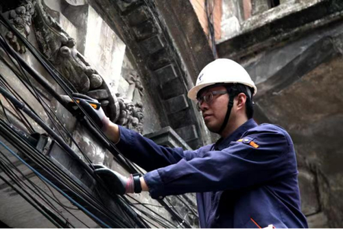 在推進光纖到戶的過程中,徐珺和他的團隊遇到的技術(shù)難題花樣百出,無數(shù)線纜擠在狹窄的PVC管里是常態(tài),讓人眼花繚亂;施工環(huán)境也千奇百怪,有時是陰暗潮濕的老樓道死角,有時不得不“飛檐走壁”;夏天在悶熱背風的角落里一蹲就是一兩個小時,冬天騎著電瓶車到用戶家,時常凍得手指僵硬。