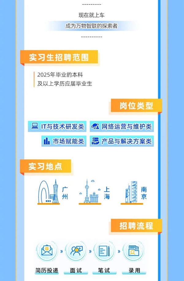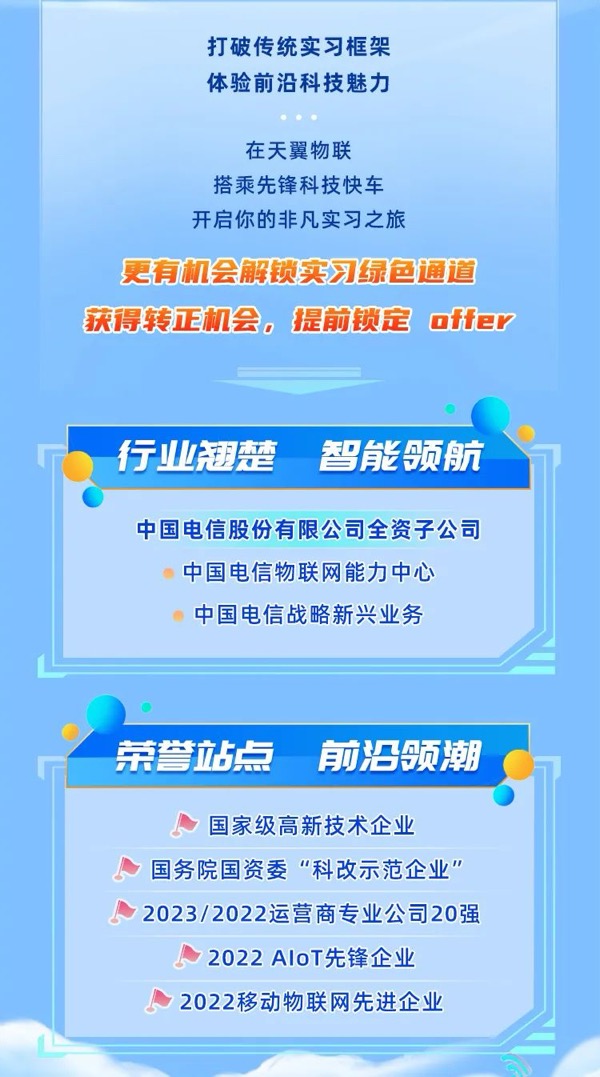 中國電信天翼物聯(lián)2025屆實習(xí)生校園招聘啟動